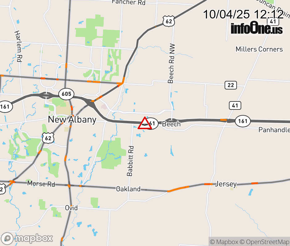 The right lane is blocked on SR-161 West beyond Beech Rd, due to a crash. Updated: Sat 10/4/25 12:12 PM EDT ![]() |