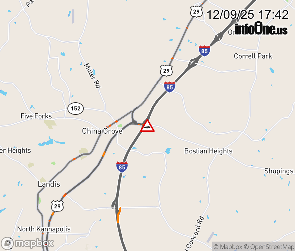 The ramp lane is narrowed at exit 68 (NC 152). ![]() |