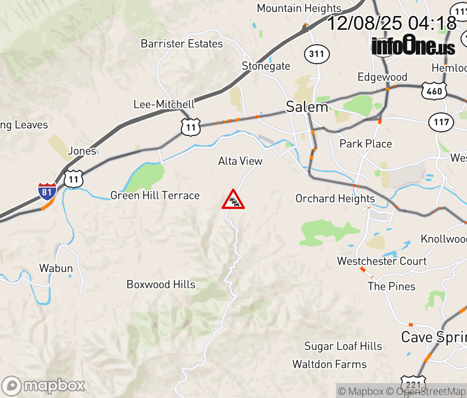 On Rt. 694 in the County of Roanoke, in the vicinity of Mowles Rd, motorists can expect potential delays due to weather. All north lanes are closed. All south lanes are closed. ![]() |