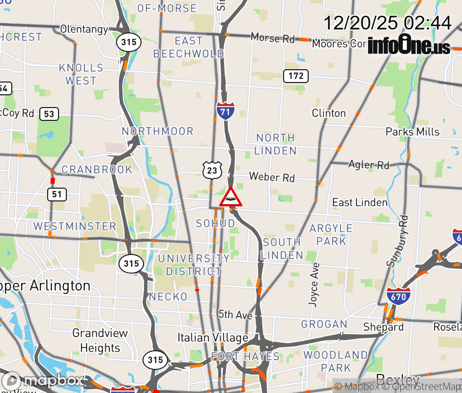 The 2 left lanes are blocked on I-71 North at Weber Rd, due to a crash. Updated: Sat 12/20/25 2:44 AM EST ![]() Updated: Sat 12/20/25 2:44 AM EST |