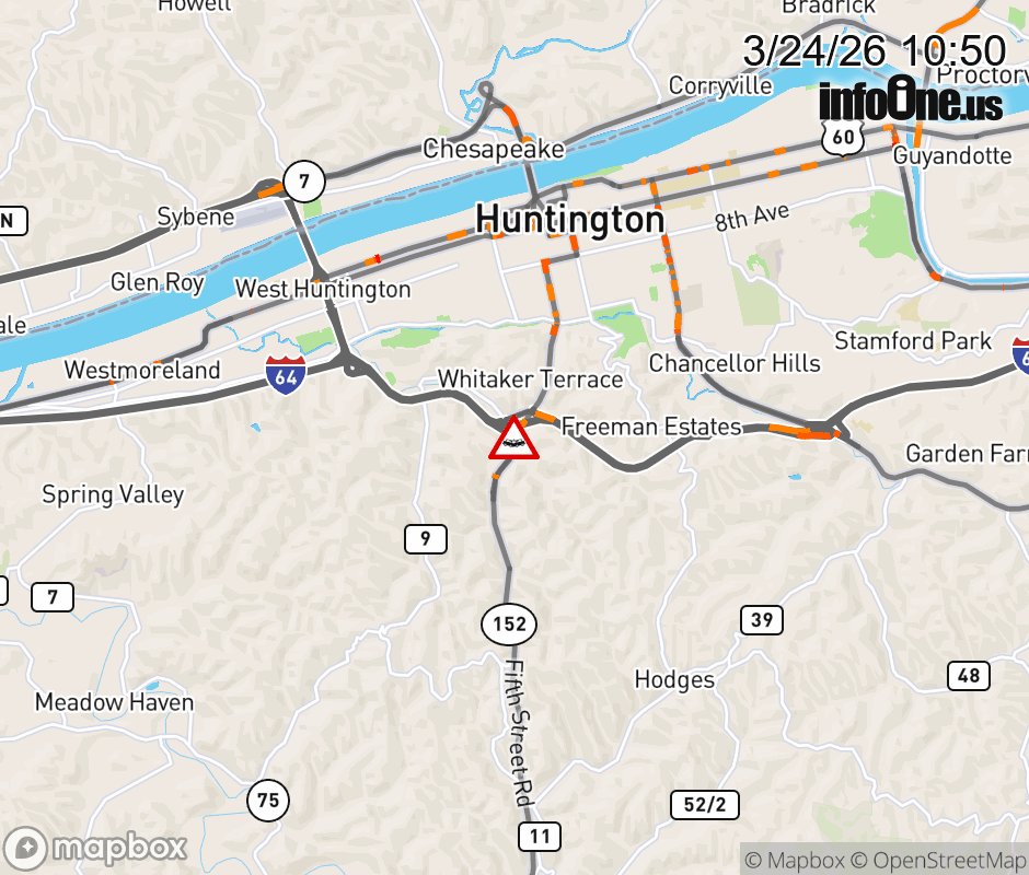 Vehicle Crash on I-64 EB Exit 8 off ramp & WV-152 (5th Street Rd). The northbound road is closed. ![]() |
