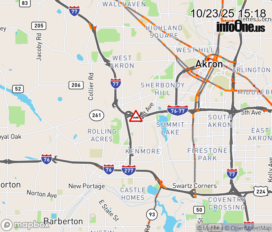 The right shoulder is blocked on I-76 East/I-77 South at I-77 South, due to a disabled vehicle. Updated: Thu 10/23/25 3:18 PM EDT ![]() |