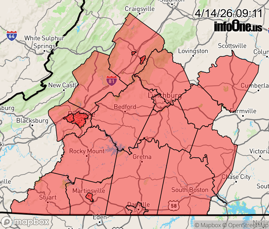 Special Weather Statement issued April 14 at 9:10AM EDT by NWS Blacksburg VA Increased fire danger conditions exist today due to the combination of low relative humidity values in the 20 to 30 percent range, dry fuels, and SW winds gusting to around 20 mph. This will result in an increased risk for the rapid spread of wildfires through early this evening. Residents and visitors are urged to exercise caution handling any potential ignition source, including machinery, cigarettes, and matches. Be sure to properly discard all smoking materials. Any dry grasses and tree litter that ignite will have the potential to spread quickly. Virginia residents are reminded that open burning is prohibited before 4 PM EDT each day through April 30th. ![]() |