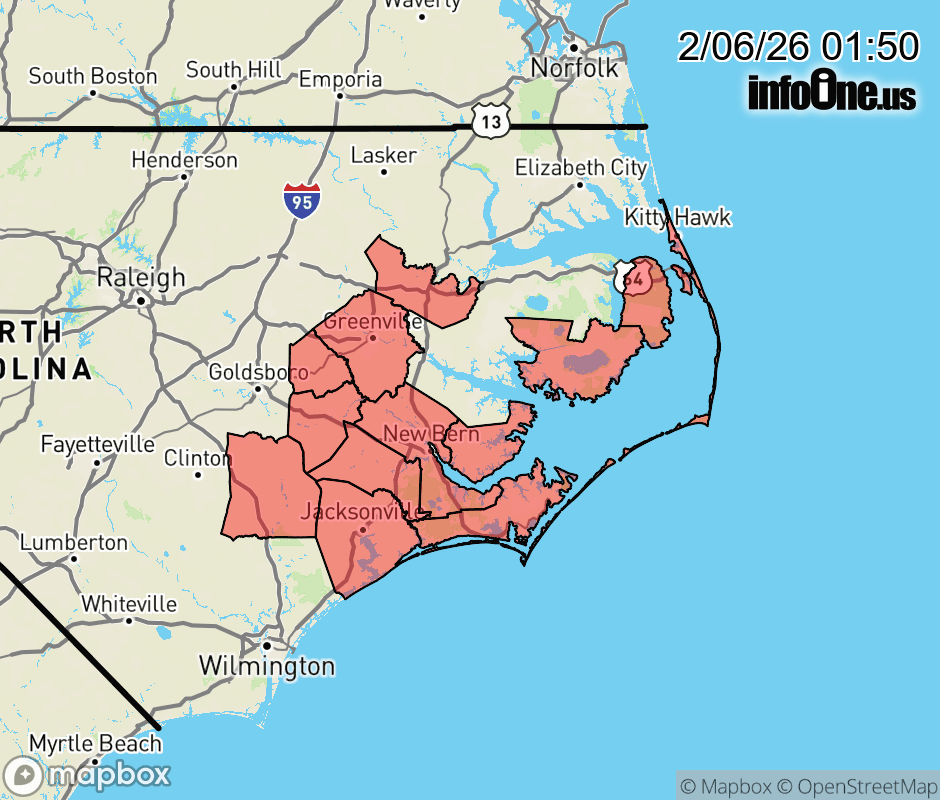 Canceled 2/6/26 1:12 PM Extreme Cold Watch issued February 6 at 1:49AM EST until February 8 at 9:00AM EST by NWS Newport/Morehead City NC * WHAT... Dangerously cold wind chills as low as 2 above possible. * WHERE... A portion of eastern North Carolina. * WHEN... From Saturday evening through Sunday morning. * IMPACTS... Frostbite and hypothermia will occur if unprotected skin is exposed to these temperatures. An extended period of freezing temperatures could cause ruptured water pipes. ![]() |