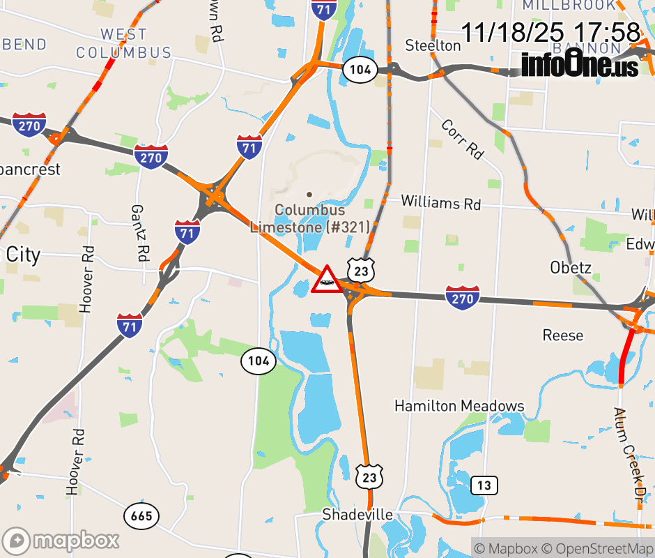 The left shoulder is blocked on I-270 East at US-23/S High St North, due to a crash. Updated: Tue 11/18/25 5:58 PM EST ![]() Updated: Tue 11/18/25 5:58 PM EST |