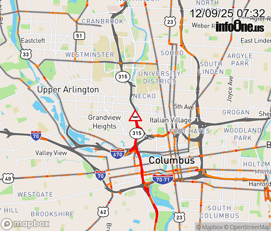 The right shoulder is blocked on SR-315 North beyond Goodale St, due to a crash. Updated: Tue 12/9/25 7:32 AM EST ![]() Updated: Tue 12/9/25 7:32 AM EST |