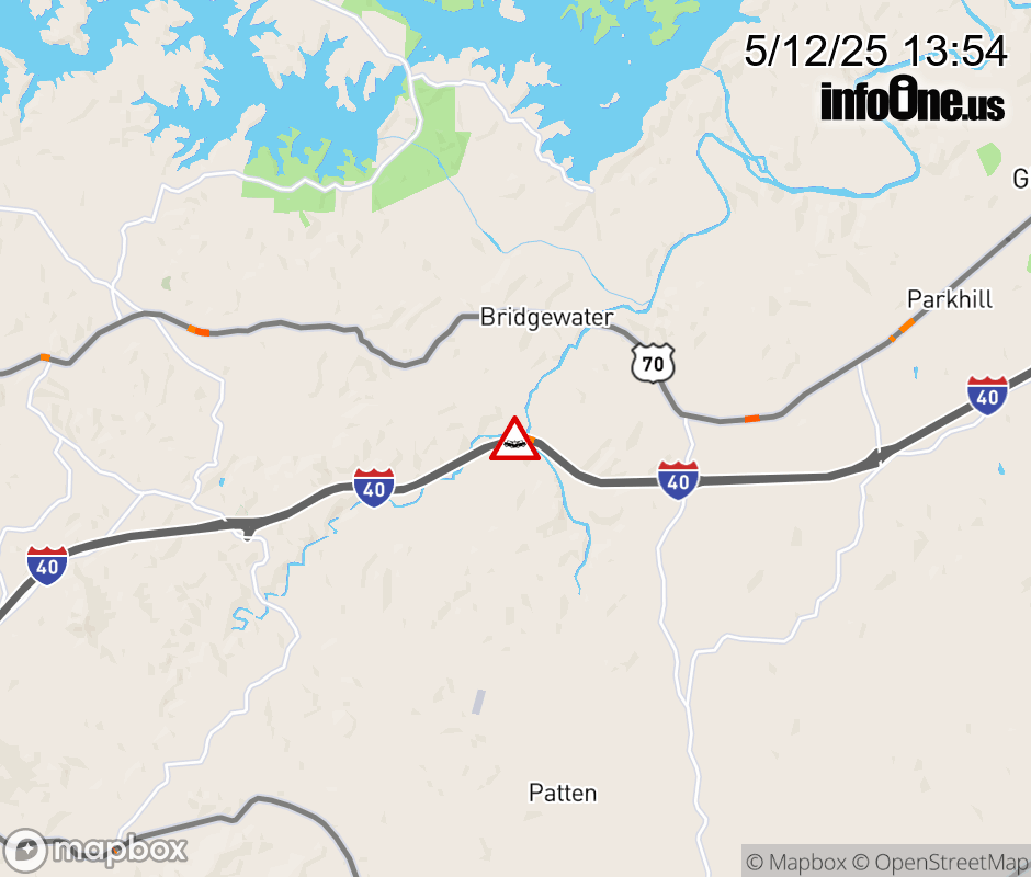 The left lane is closed 1 mile west of Exit 94, Dysartsville Road. Updated: Mon 5/12/25 1:54 PM EDT ![]() Updated: Mon 5/12/25 1:54 PM EDT |
