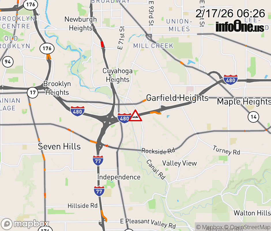 The right shoulder is blocked on I-480 West Express beyond Transportation Blvd/E 98th St, due to a disabled vehicle. ![]() |