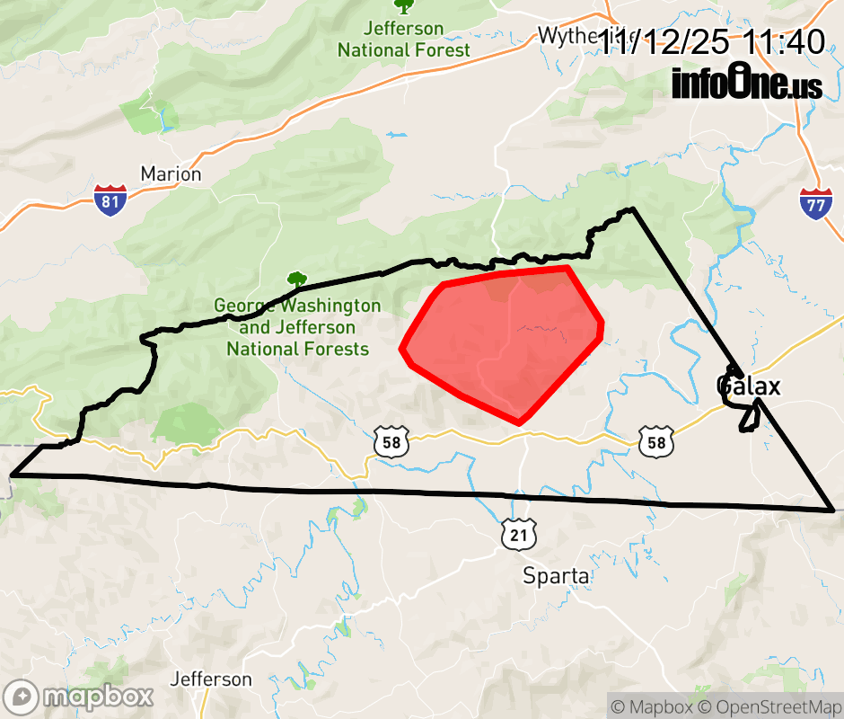 Canceled 11/12/25 12:30 PM Grayson County has 1 power outage affecting 1076 customers. Appalachian Power 1076 without power Elk Creek: Customers affected: 688 (77%) Estimated repair: Wed 1:00 PM Independence: Customers affected: 367 (13%) Estimated repair: Wed 1:00 PM Fries: Customers affected: 21 (1%) Estimated repair: Wed 1:00 PM ![]() |