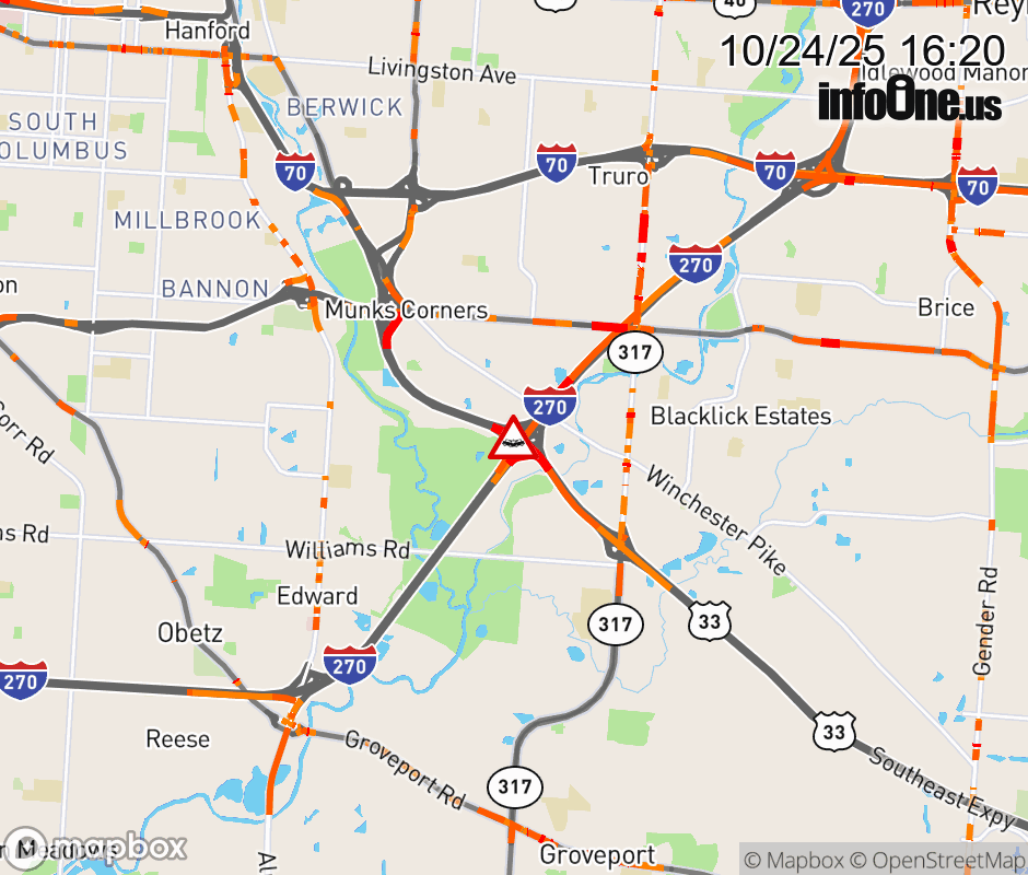 Expect lane closures on US-33 East at I-270 North, due to a crash. Updated: Fri 10/24/25 4:20 PM EDT ![]() Updated: Fri 10/24/25 4:20 PM EDT |