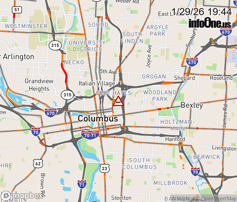 Expect lane closures on Ramp I-670 East to I-71 South, due to a crash. ![]() |