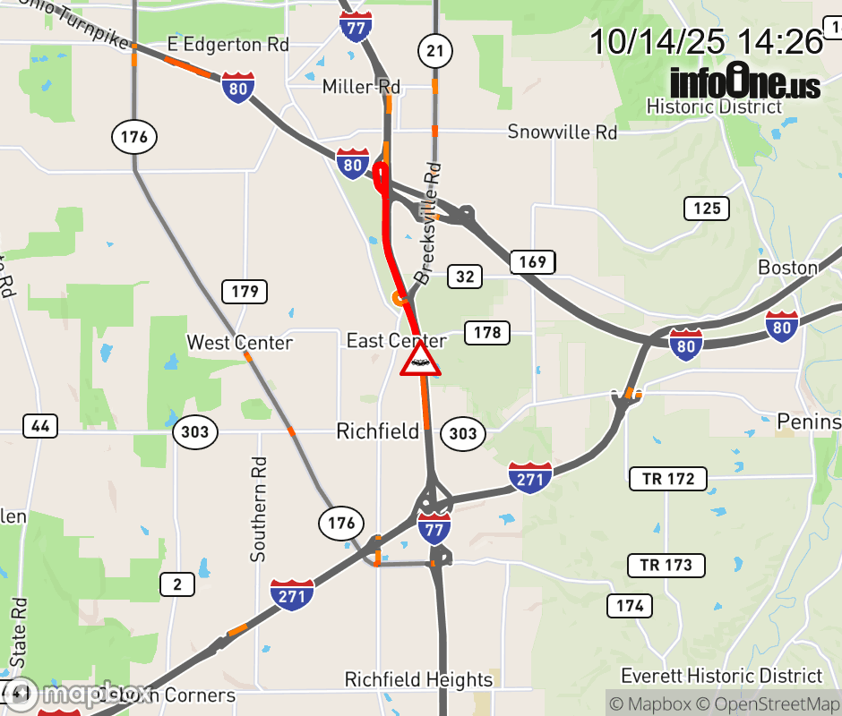 Expect lane closures on I-77 South beyond SR-21/Brecksville Rd, due to a crash. ![]() |