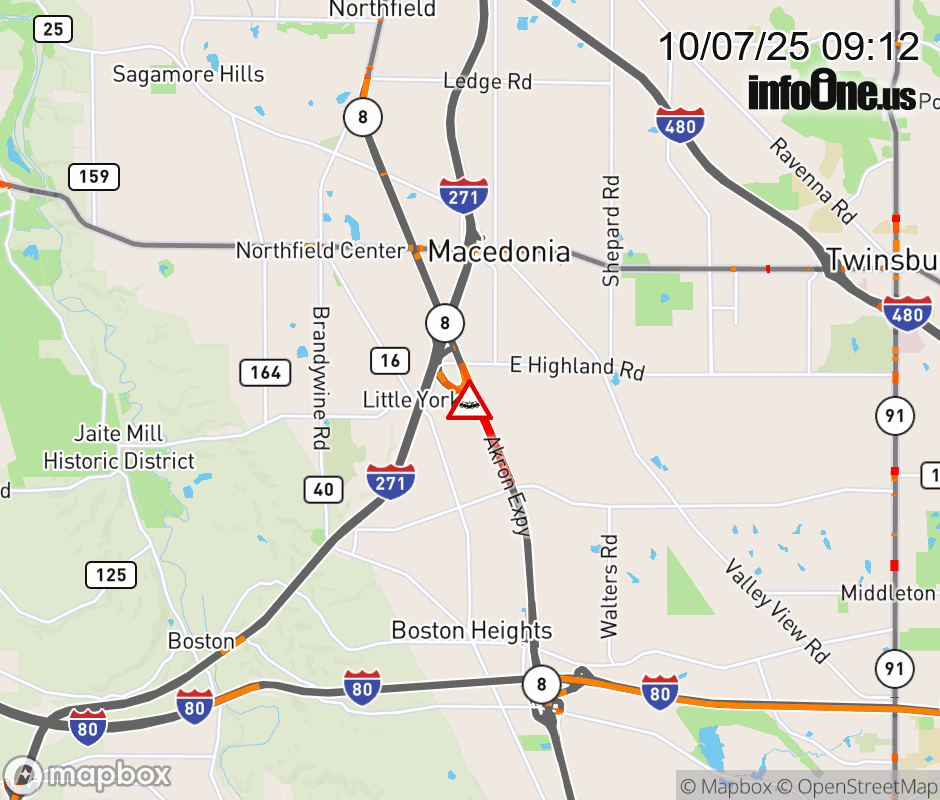 Expect lane closures on Ramp SR-8 North to I-271 North, due to a crash. ![]() |
