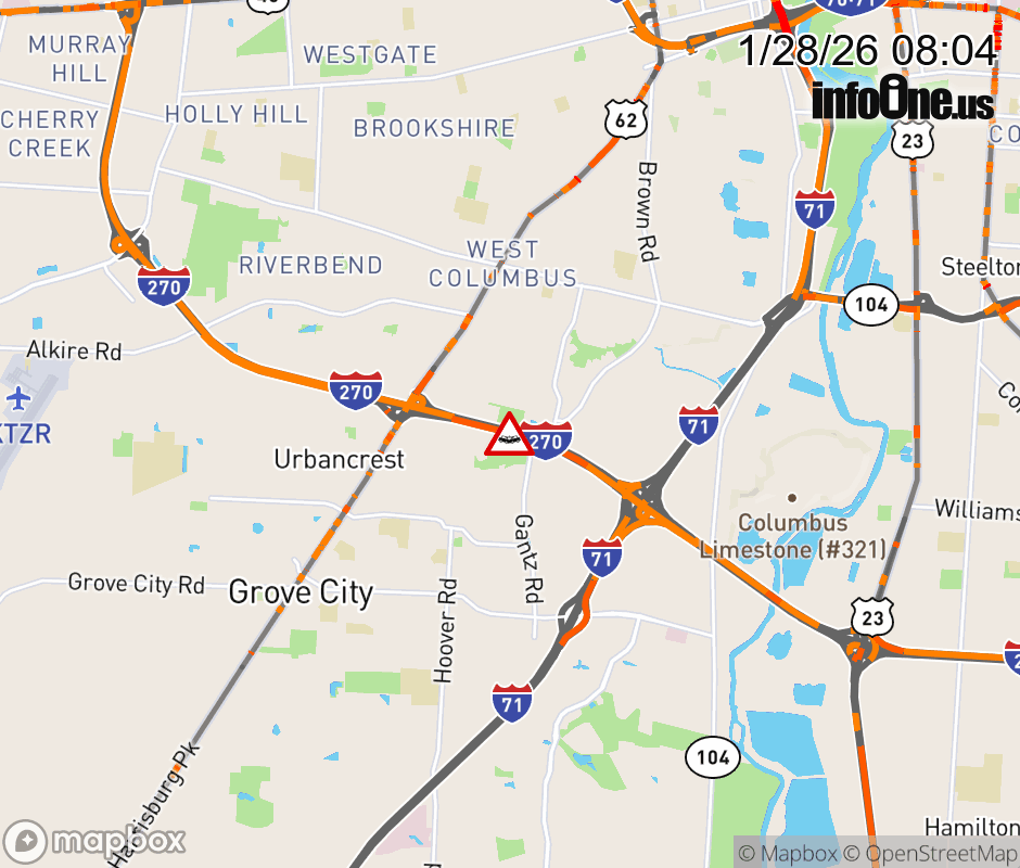 The right shoulder is blocked on I-270 East beyond US-62/SR-3, due to a crash. ![]() |