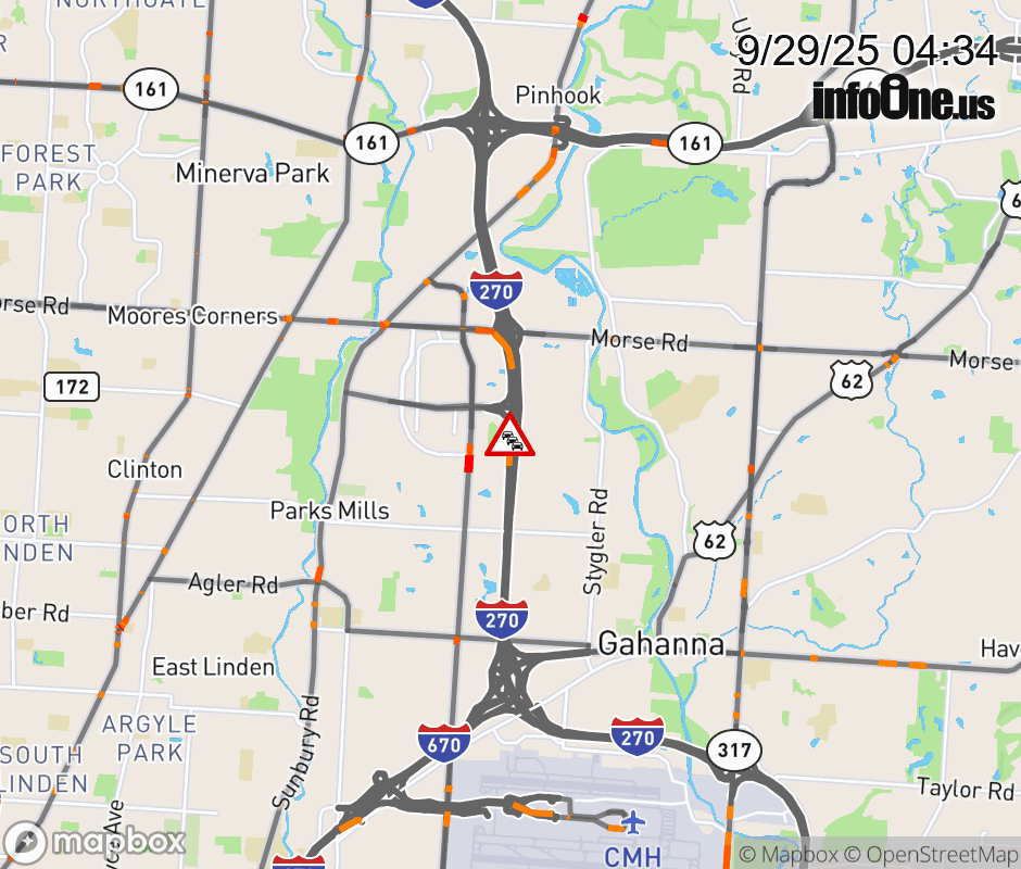 The 2 left lanes are blocked on I-270 South Collector beyond Easton Way, due to a fire. ![]() |