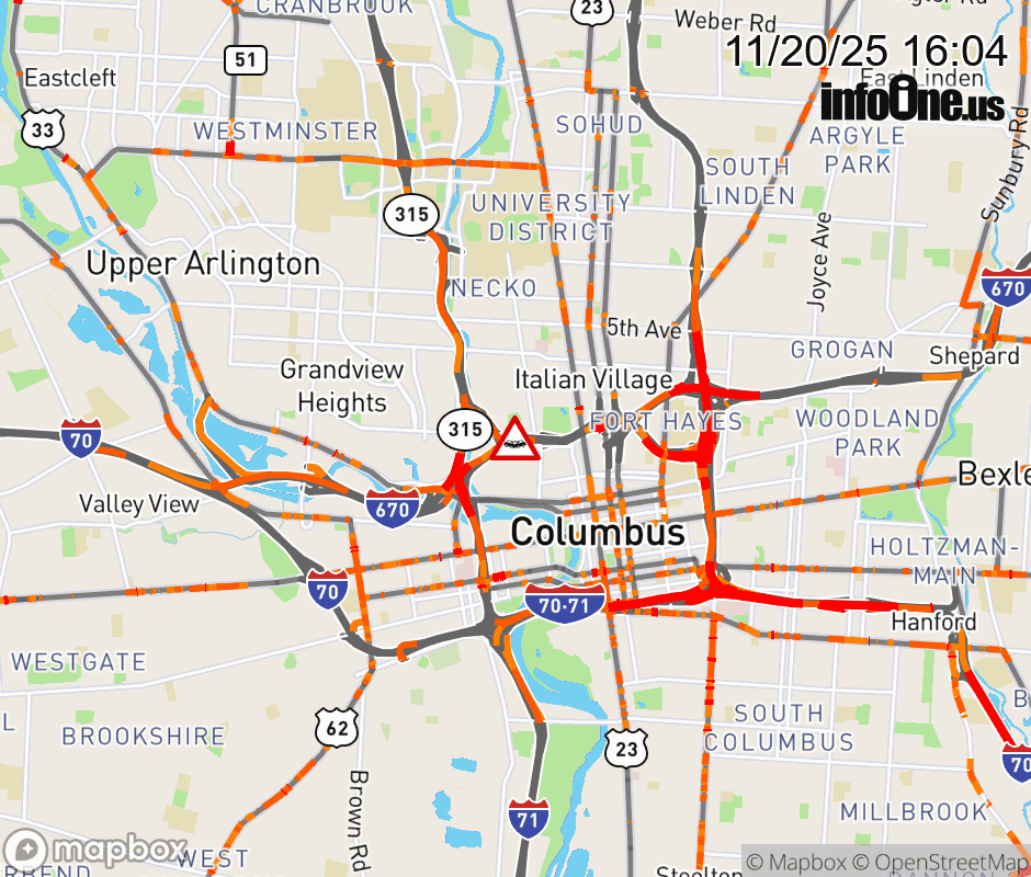 The left lane is blocked on I-670 West at SR-315 North, due to a crash. ![]() |
