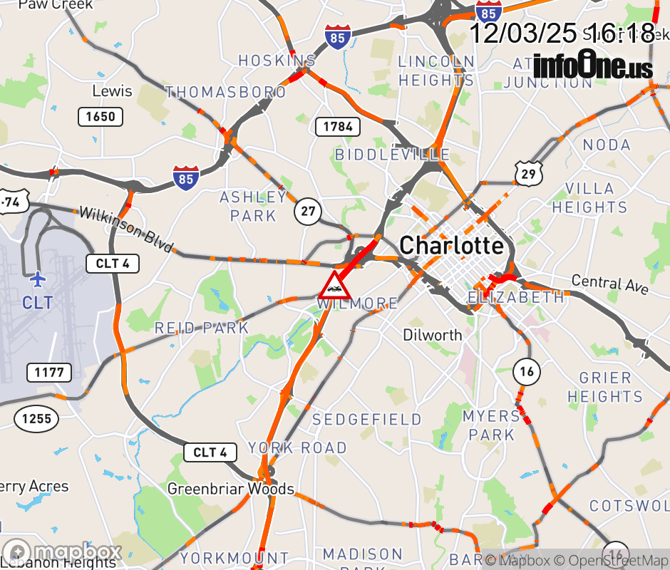 The right lane is closed at Exit 9A(West Blvd.). ![]() |