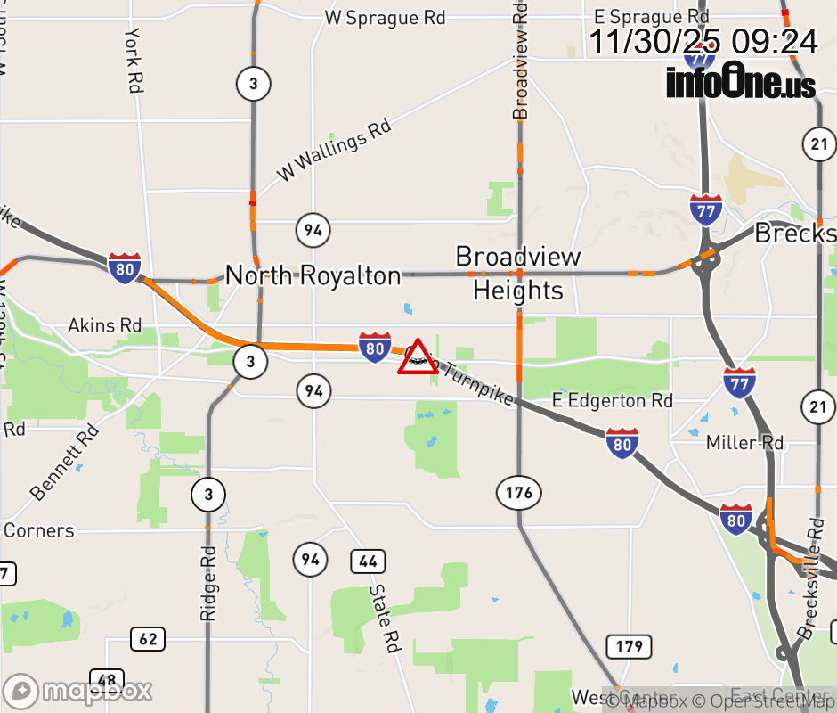 Expect lane closures on I-80 East (Ohio Turnpike) beyond I-71, due to a crash. ![]() |