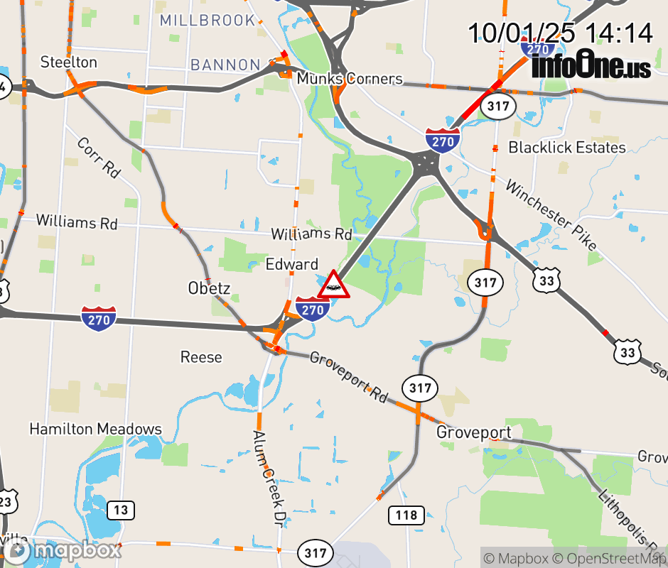 The right lane is blocked on I-270 South beyond US-33 East, due to a crash. ![]() |
