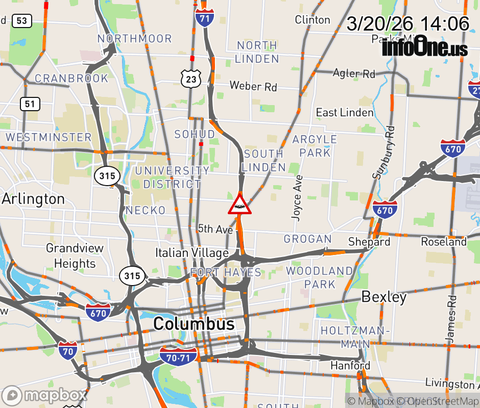 The right shoulder is blocked on I-71 North at 11th Ave, due to a crash. ![]() |