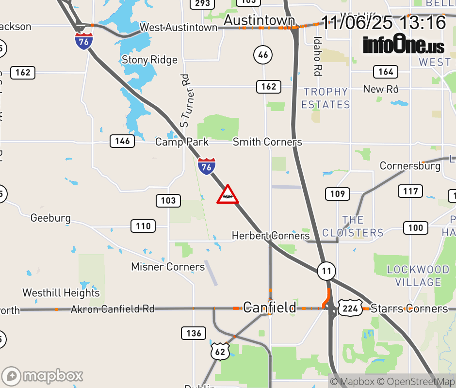 Expect lane closures on I-76 East (Ohio Turnpike) beyond I-76/80, due to a crash. Updated: Thu 11/6/25 1:16 PM EST ![]() |