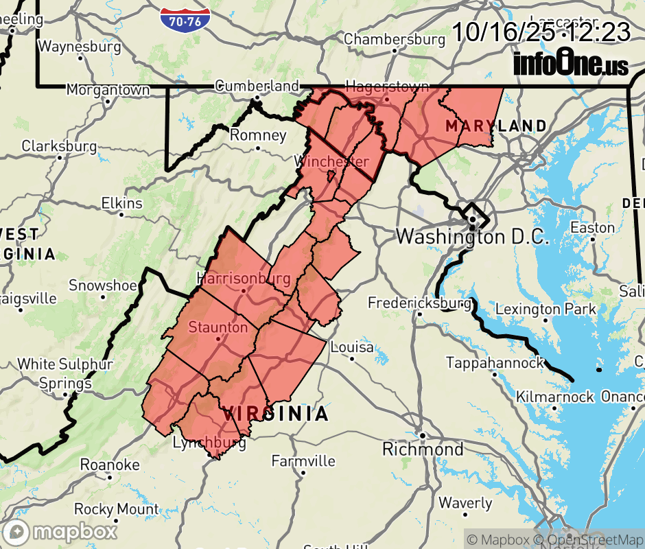 Canceled 10/16/25 8:27 PM Frost Advisory issued October 16 at 12:22PM EDT until October 17 at 9:00AM EDT by NWS Baltimore MD/Washington DC * WHAT... Temperatures in the mid 30s will result in frost formation. * WHERE... Portions of north central Maryland, central and northwest Virginia, and panhandle West Virginia. * WHEN... From 2 AM to 9 AM EDT Friday. * IMPACTS... Frost could harm sensitive outdoor vegetation. Sensitive outdoor plants may be killed if left uncovered. ![]() |