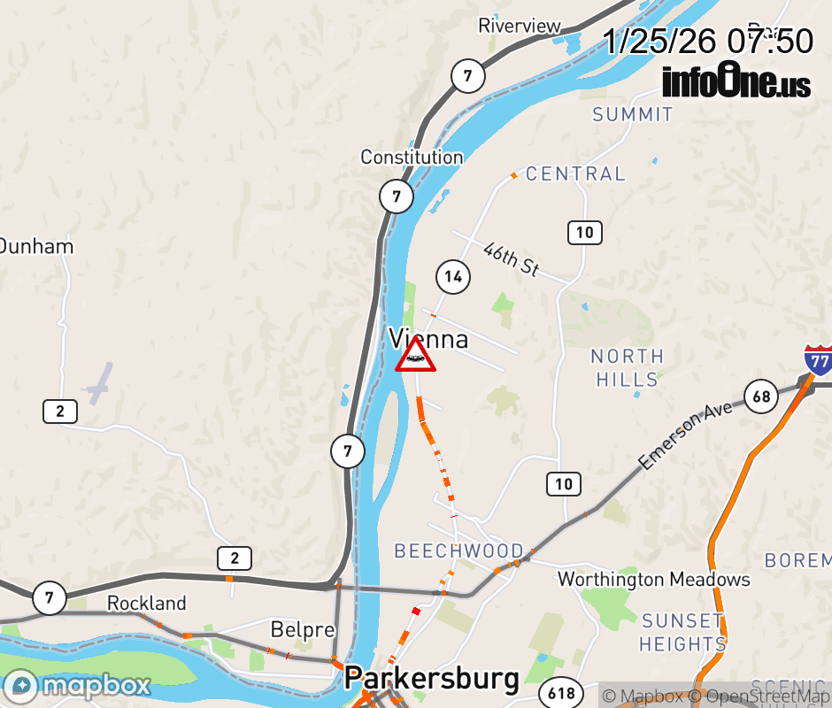 Vehicle Crash on WV-14 (Area of 1802 Grand Central Ave) in Vienna. Updated: Sun 1/25/26 7:42 AM EST ![]() Updated: Sun 1/25/26 7:50 AM EST |