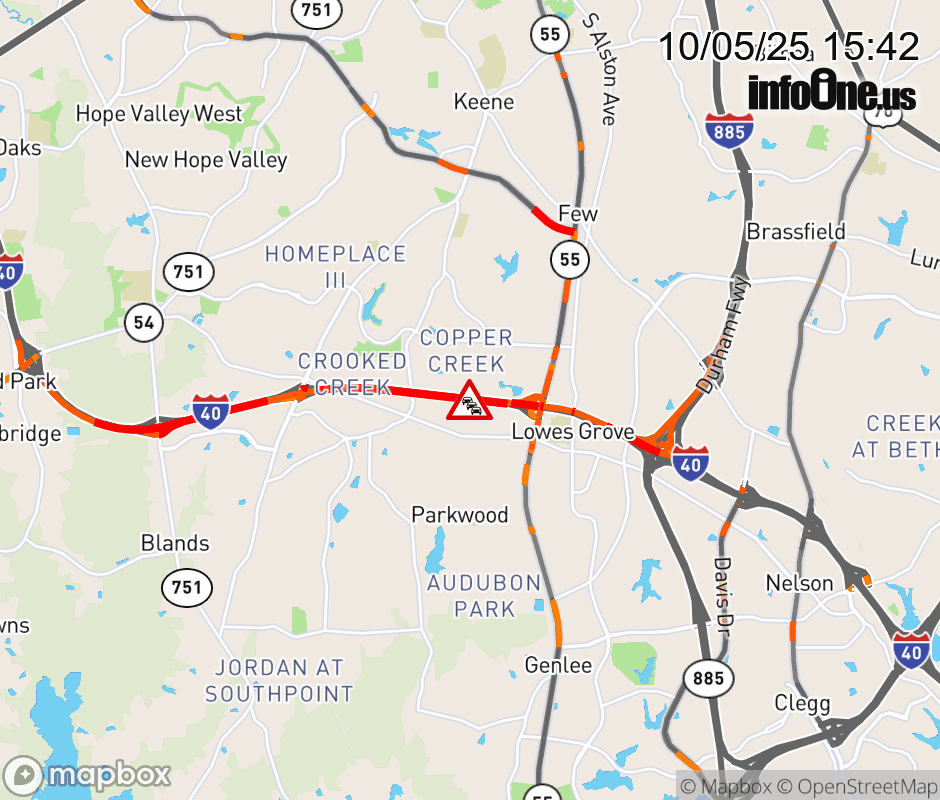 The right is closed before Exit 278 (NC 55). Updated: Sun 10/5/25 3:42 PM EDT ![]() Updated: Sun 10/5/25 3:42 PM EDT |