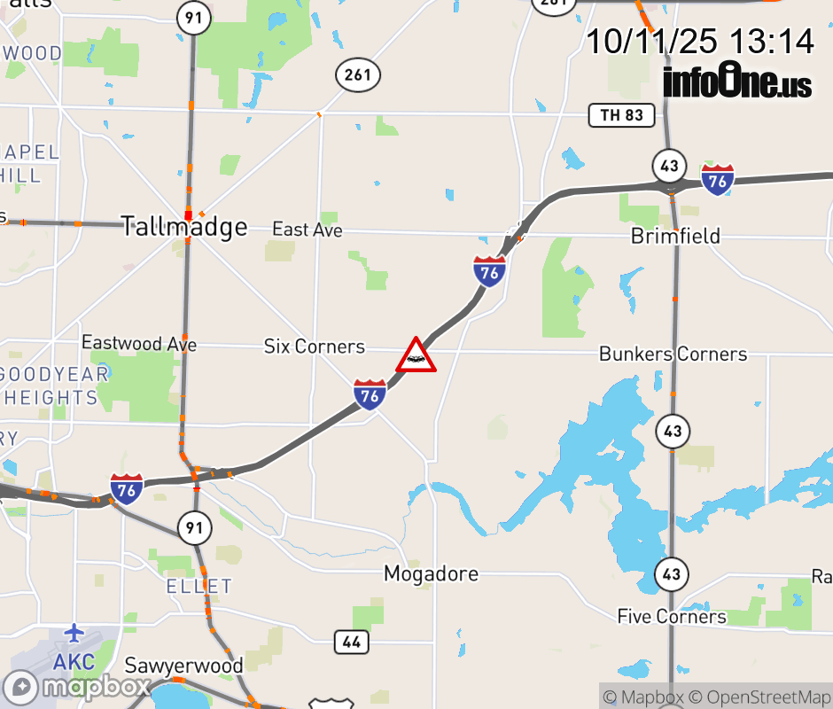 Canceled 10/11/25 2:00 PM Location: I-76 West W, OH Accident.