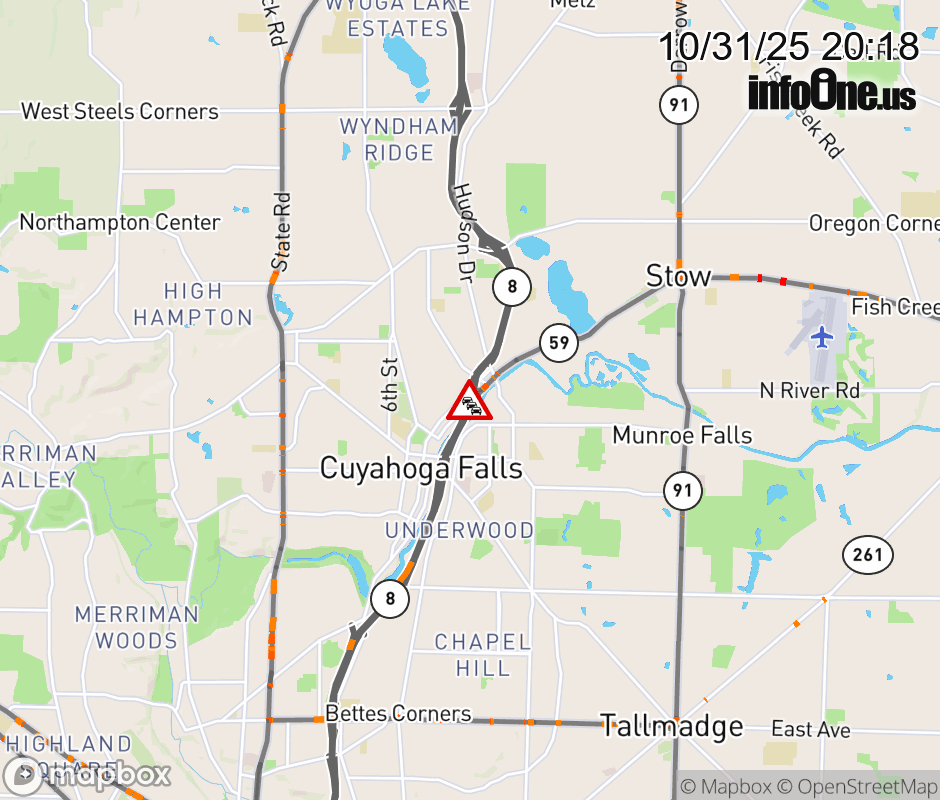 The right lane is blocked on SR-8 North at Front St/Second St, due to repairs/maintenance. Updated: Fri 10/31/25 8:18 PM EDT ![]() Updated: Fri 10/31/25 8:18 PM EDT |