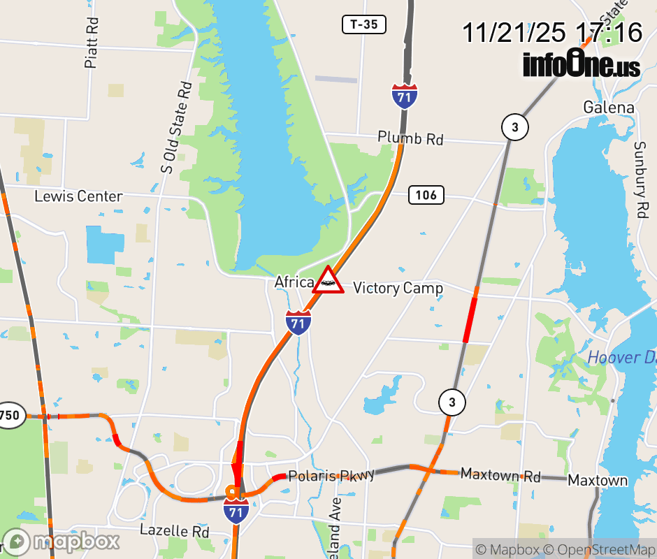 The left shoulder is blocked on I-71 South beyond Delaware County Rest Area 6-26, due to a crash. Updated: Fri 11/21/25 5:16 PM EST ![]() |
