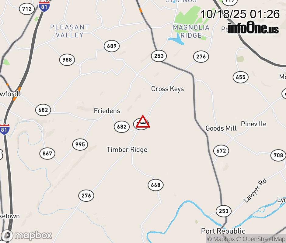 On VA-276 in the County of Rockingham, in the vicinity of Williams Run Rd; Rt. 671E/W (Rockingham County), motorists can expect delays due to a vehicle crash. All north lanes are closed. All south lanes are closed. ![]() |