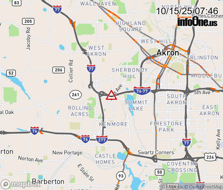 The right shoulder is blocked on I-76 West/I-77 North at East Ave, due to a crash. ![]() |