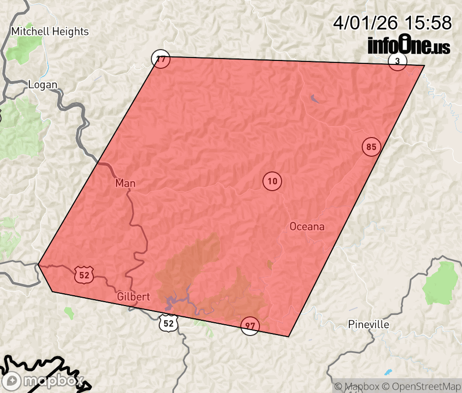 Canceled 4/1/26 4:13 PM Severe Thunderstorm Warning issued April 1 at 3:57PM EDT until April 1 at 4:15PM EDT by NWS Charleston WV At 354 PM EDT, a severe thunderstorm was located near Amherstdale-Robinette, or 14 miles northwest of Pineville, moving east at 35 mph. HAZARD...Quarter size hail. SOURCE...Radar indicated. IMPACT...Damage to vehicles is expected. Locations impacted include... Oceana, Man, R.d. Bailey Lake, Mallory, Amherstdale-Robinette, Bald Knob, Gilbert Creek, Gilbert, Clear Fork, Cyclone, Naoma, Coal Mountain, Hampden, Bruno, Kopperston, Blair, Amherstdale-Robine, and Baileysville. ![]() |