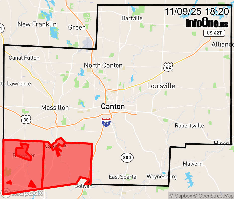 Canceled 11/9/25 7:20 PM Stark County has 1 power outage affecting 1 customer. Ohio Edison 1 without power Sugar Creek Township: Customers affected: 19 (3%) Estimated repair: Sun 10:00 PM Updated: Sun 11/9/25 7:10 PM EST ![]() Updated: Sun 11/9/25 6:20 PM EST |