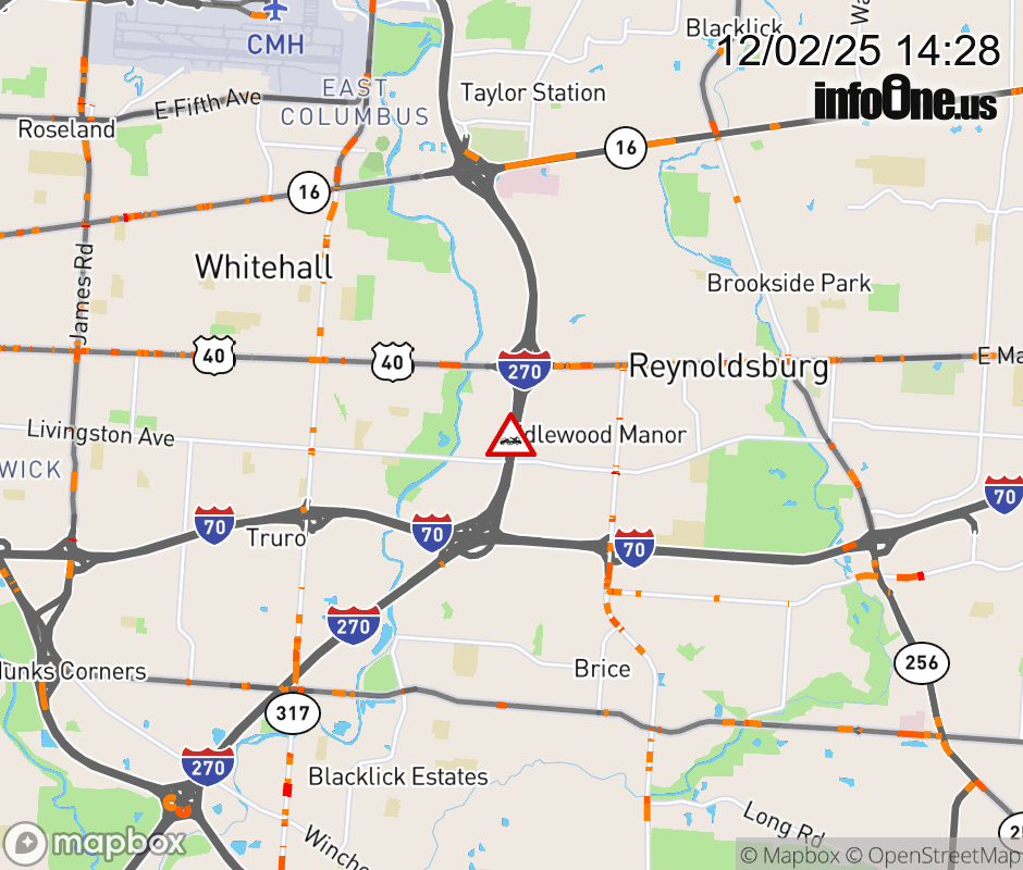 The left lane is blocked on I-270 South Collector beyond US-40/E Main St East, due to a disabled vehicle. ![]() |