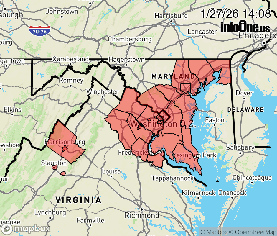Cold Weather Advisory issued January 27 at 2:06PM EST until January 28 at 11:00AM EST by NWS Baltimore MD/Washington DC * WHAT... Very cold wind chills between 0 and 8 below expected. * WHERE... Washington DC, and portions of central, northeast, northern, and southern Maryland, and central, northern, and western Virginia. * WHEN... From 7 PM this evening to 11 AM EST Wednesday. * IMPACTS... The cold wind chills could result in hypothermia if precautions are not taken. Frostbite will occur if unprotected skin is exposed to these temperatures. * ADDITIONAL DETAILS... Additional Cold Weather Headlines are expected at times through the end of the week as the region remains in an Arctic Airmass. ![]() |