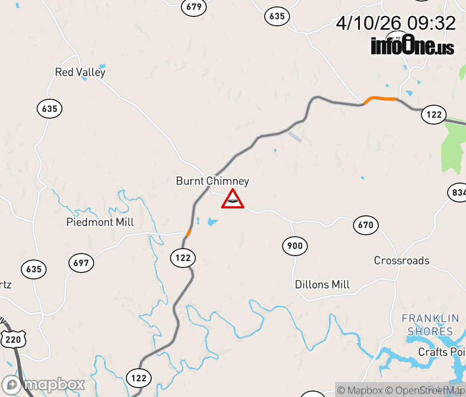 On Rt. 670 East in the County of Franklin, in the vicinity of Rt. 9154E/W (Franklin County), motorists can expect delays due to a vehicle crash. Lane closures exist. Updated: Fri 4/10/26 9:32 AM EDT ![]() Updated: Fri 4/10/26 9:32 AM EDT |