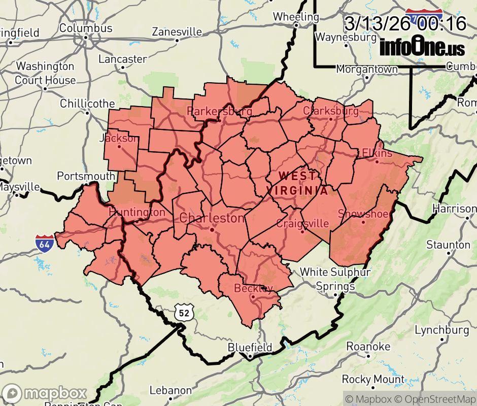 Canceled 3/13/26 12:53 AM Wind Advisory issued March 13 at 12:15AM EDT until March 13 at 8:00PM EDT by NWS Charleston WV * WHAT... Southwest winds 15 to 25 mph with gusts up to 45 mph expected. * WHERE... Portions of northeast Kentucky, southeast Ohio, and central, northeast, northern, southeast, southern, and western West Virginia. * WHEN... From 8 AM this morning to 8 PM EDT this evening. * IMPACTS... Gusty winds will blow around unsecured objects. Tree limbs could be blown down and a few power outages may result. ![]() |
