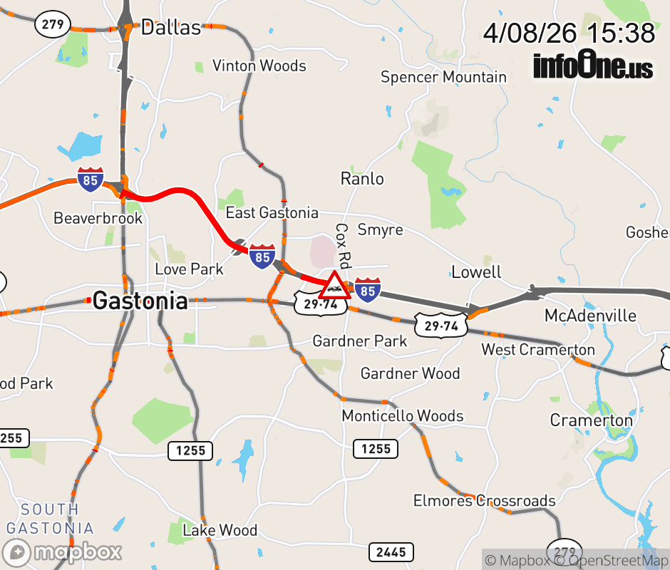 The right lane is closed at Exit 21(Cox Road). ![]() |