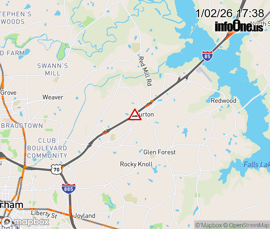 The left shoulder is closed near Exit 182 (Red Mill Rd). ![]() |