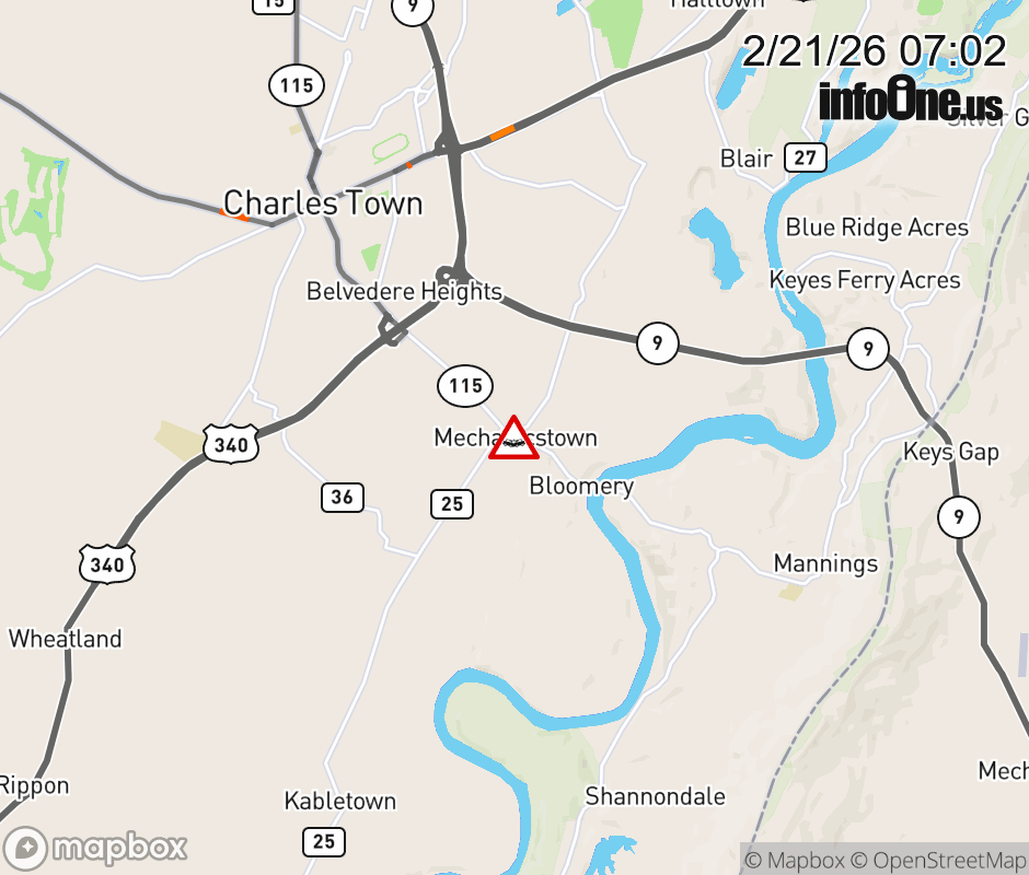 Vehicle Crash on WV-115 (Charles Town Rd) & CR-9/3 (Cattail Run Rd) in Charles Town. ![]() |