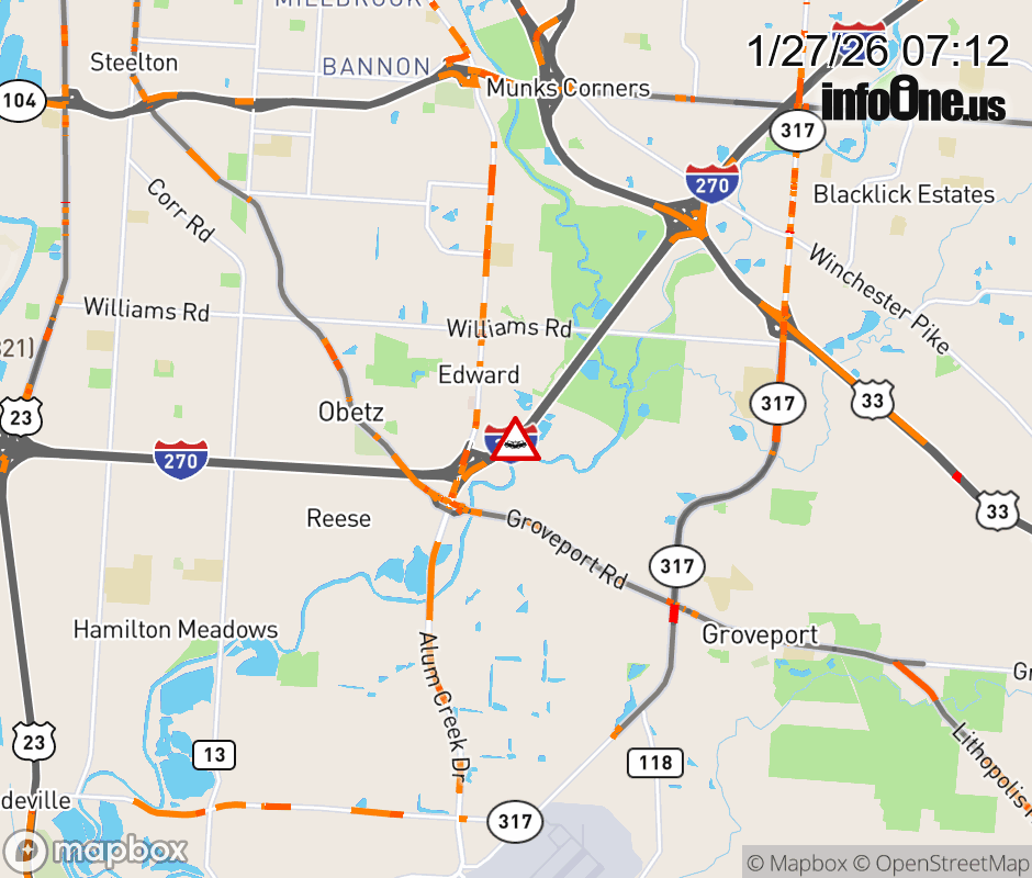 Expect lane closures on I-270 South at Alum Creek Dr, due to a crash. ![]() |