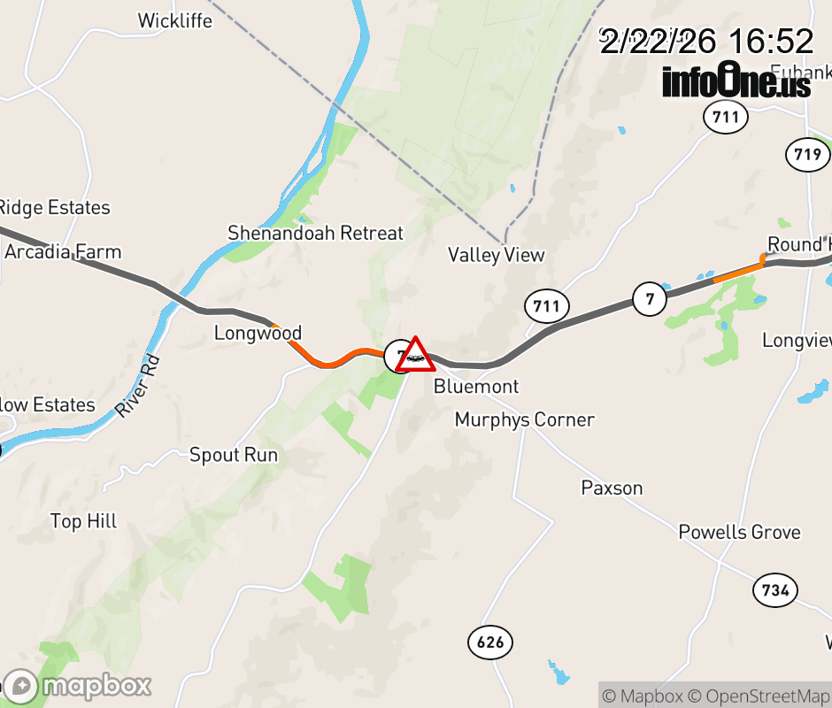 On VA-7 West in the County of Loudoun, in the vicinity of Blueridge Mountain Rd; Raven Rocks Rd; Seltenhorst Ln; Rt. 601N/S (Clarke County), motorists can expect delays due to a vehicle crash. Lane closures exist. ![]() |