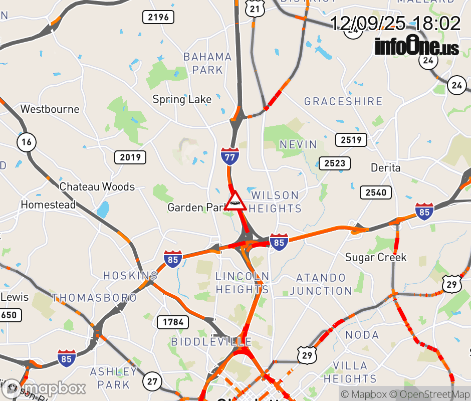 Crash on I-77 South Bound prior to exit 13, I-85 Interchange. The left express lane is blocked. ![]() |
