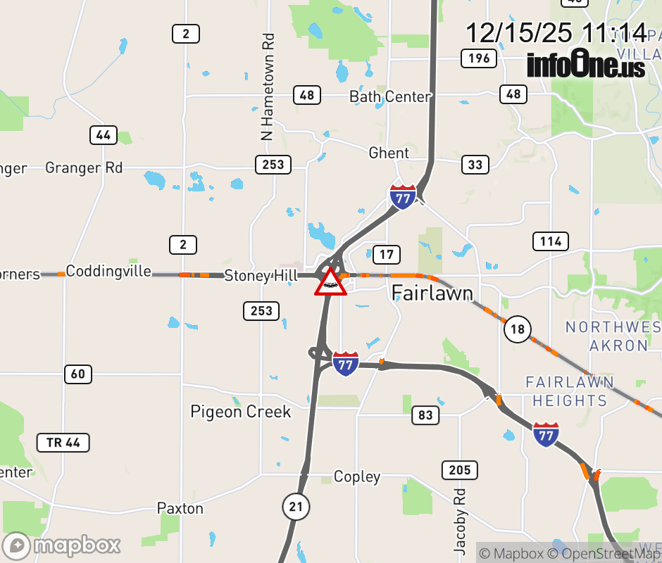 The right lane is blocked on I-77 North at SR-18 West, due to a crash. ![]() |