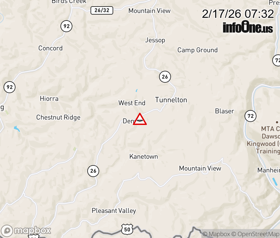 Vehicle Crash on WV-26 (S Preston Hwy) & Maxwell Rd in Tunnelton. ![]() |