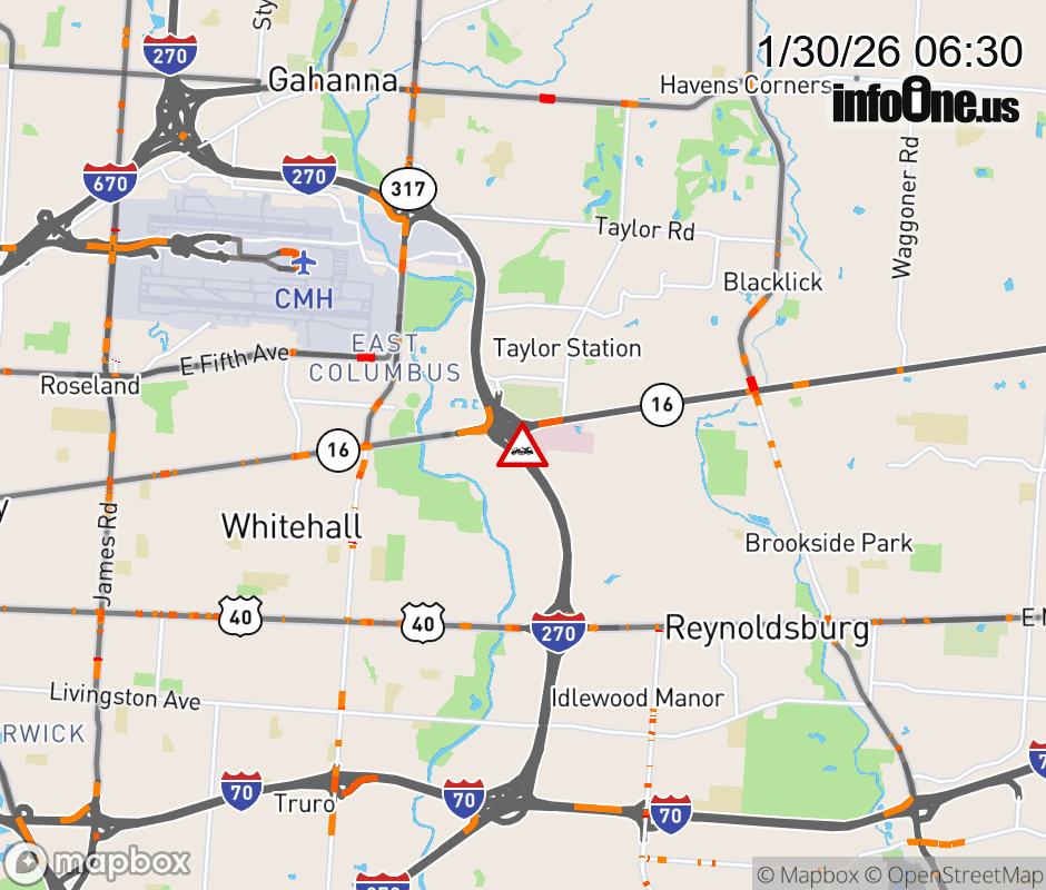 All lanes are closed on Ramp from I-270 N to OH-16 at E Broad St, due to a disabled vehicle. ![]() |