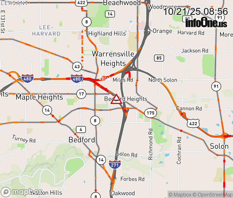 Expect lane closures on I-480 West beyond Rockside Rd, due to a crash. Updated: Tue 10/21/25 8:56 AM EDT ![]() Updated: Tue 10/21/25 8:56 AM EDT |
