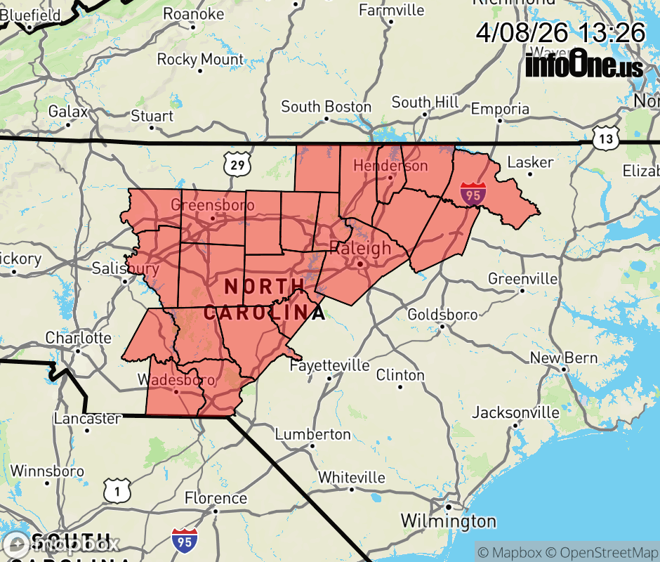 Frost Advisory issued April 8 at 1:25PM EDT until April 9 at 9:00AM EDT by NWS Raleigh NC * WHAT... Temperatures as low as 32 will result in frost formation. * WHERE... The Piedmont, western Sandhills, and northern Coastal Plain of central North Carolina. * WHEN... From 2 AM to 9 AM EDT Thursday. * IMPACTS... Frost could harm or kill sensitive outdoor vegetation or plants if left uncovered. ![]() |